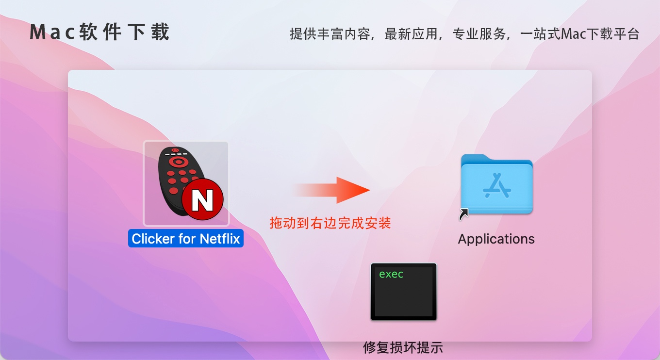 将左侧的Netflix拖动到右侧的应用程序中即可,如图: