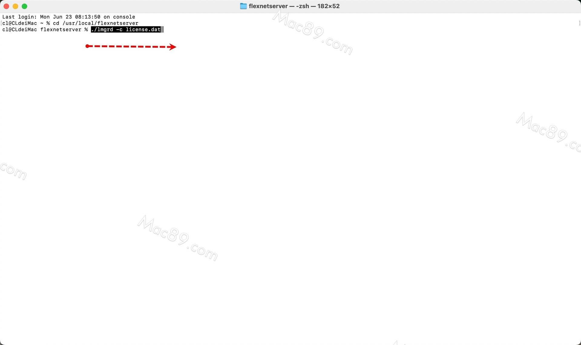替换完成后,应用程序-实用工具中打开终端,执行第一个命令cd /usr/local/flexnetserver ,回车