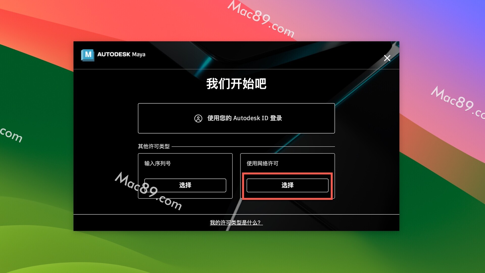 操作完毕后,应用程序中打开软件,在使用网络许可处,点击选择