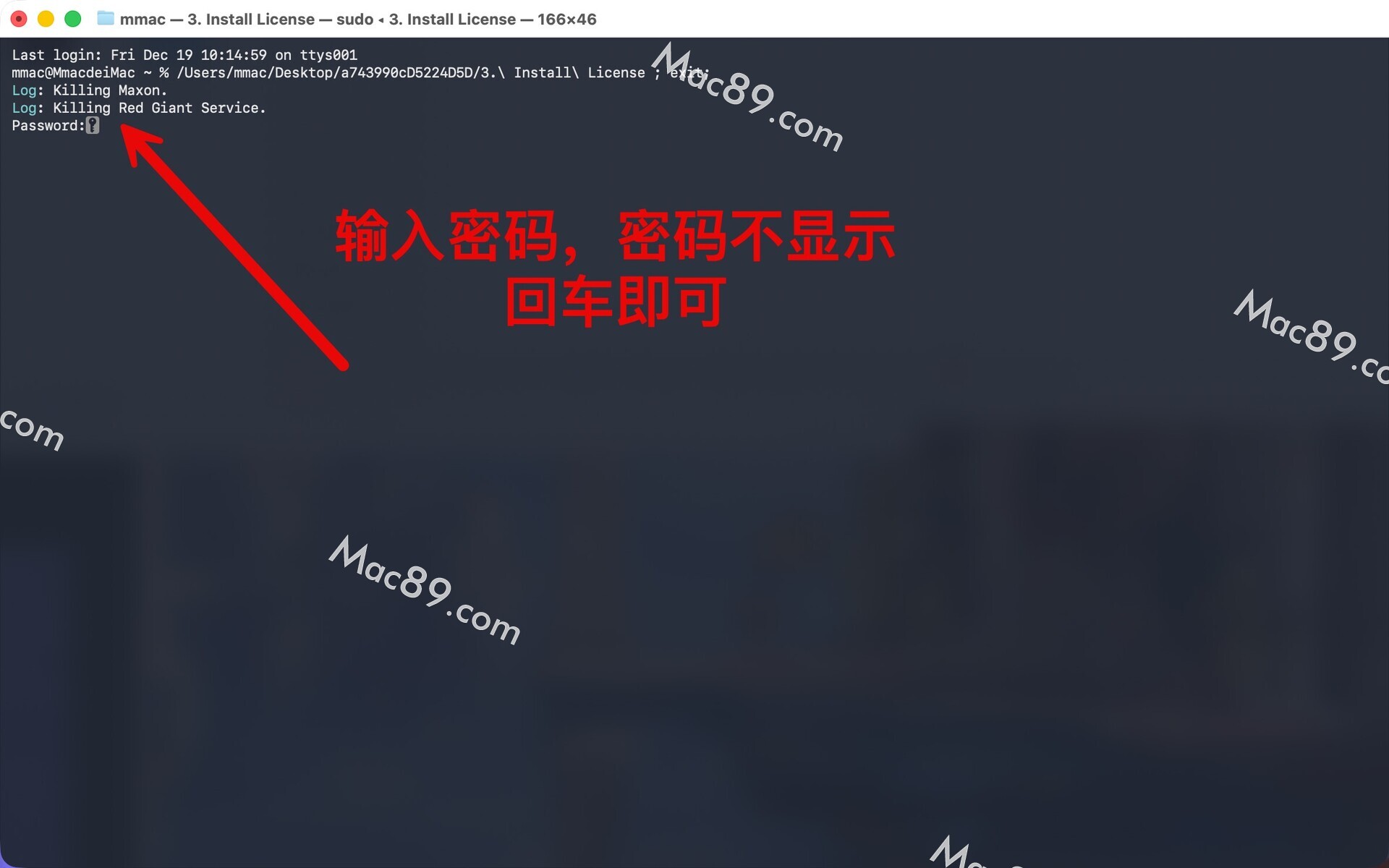 双击安装补丁后,弹出终端页面,在下图位置输入密码(密码不显示回车即可)