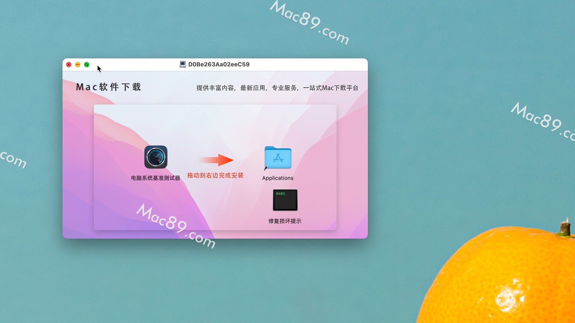 安装包下载完成后,拖动左侧的电脑系统基准测试器到右侧应用程序中即可。